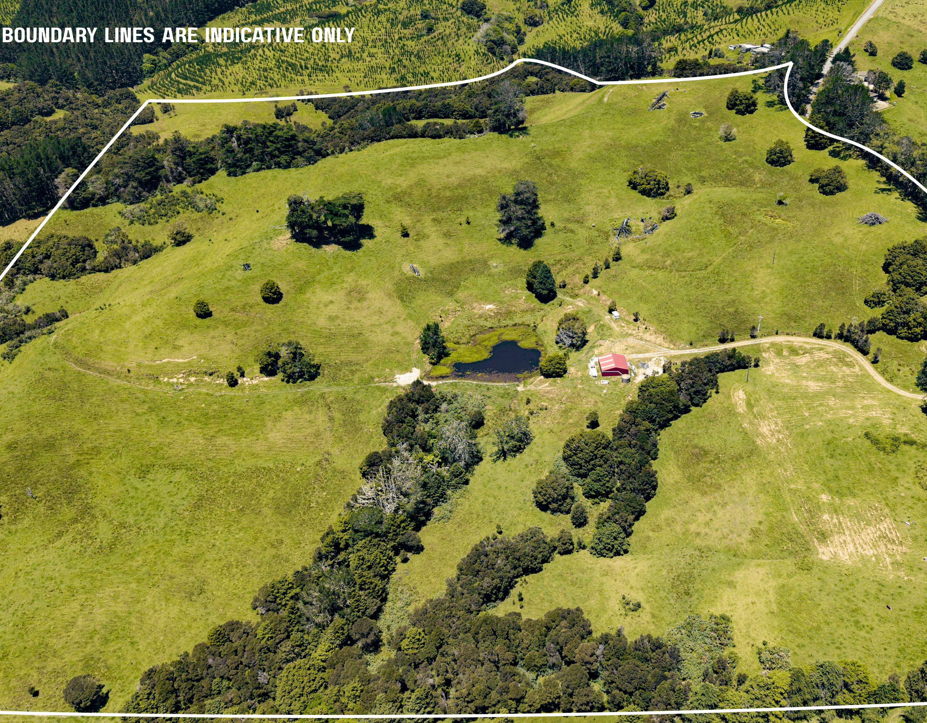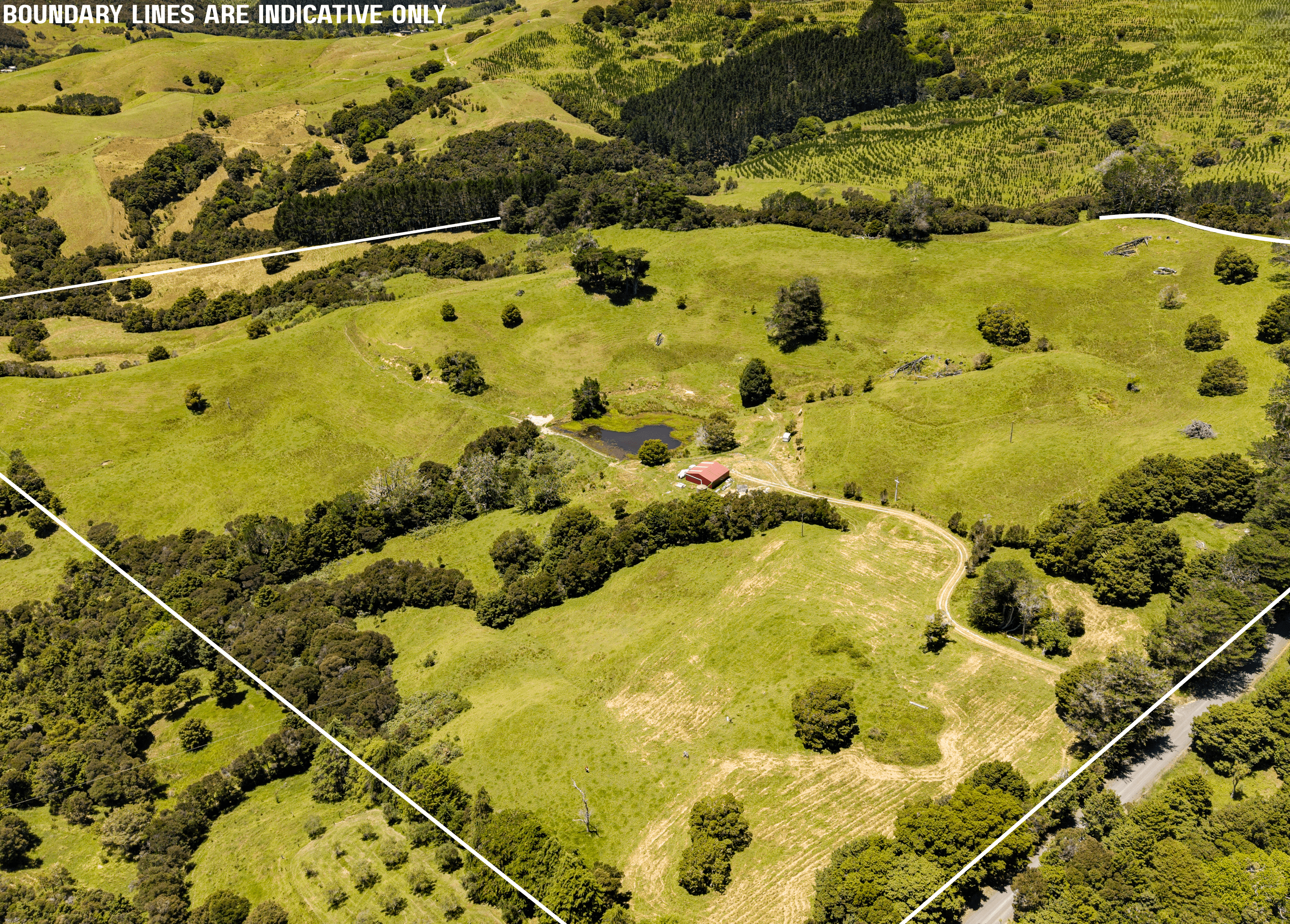 Infrastructure is already in place, with a large shed, power connected to the site, and a metal driveway leading to the shed area, making day-one usability a real advantage. A large pond provides reliable stock water, supporting the property’s current use and future farming potential.