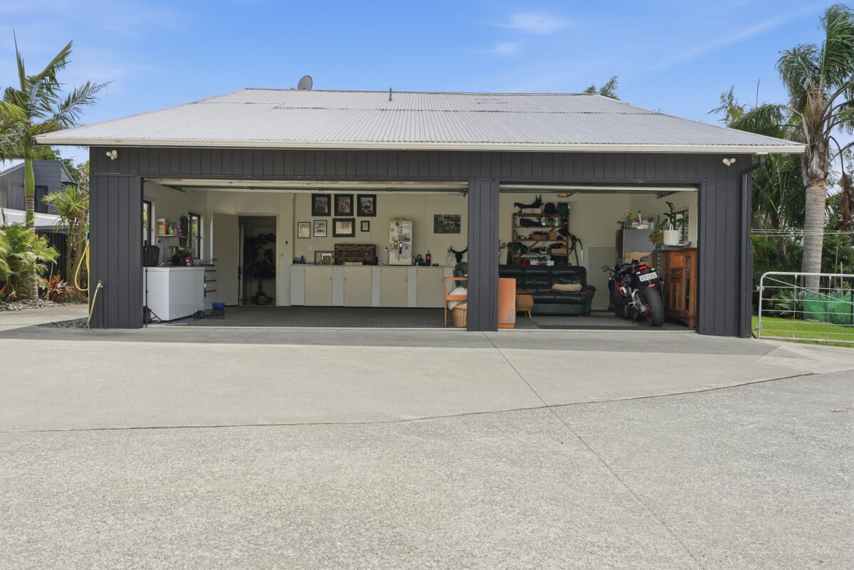Situated on a generous land area of 1780 sqm approx, this home offers plenty of outdoor space for gardening, entertaining, or simply enjoying the surroundings. A generous concrete entrance, with large double garaging for secure parking and easy access. This space also has the laundry area plus an extra single garage outside for storage.