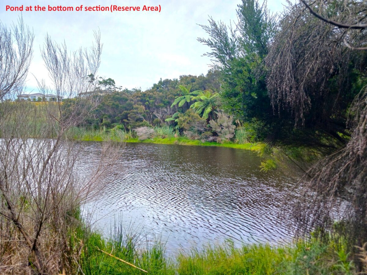 This sloping coastal section will give you elevated rural views and is a blank canvas ready for a creative mind. With a little vision and care, you can transform it into a stunning coastal retreat – whether it’s a holiday hideaway, a permanent home, or a space to escape the everyday. At the bottom of the section, a serene pond adds charm and a peaceful spot to enjoy the outdoors (Reserve Area).